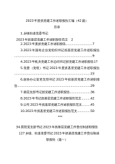 2023年度抓党建工作述职报告汇编(42篇)目录1.乡镇街道党委书记2023年抓基层党建工作述职报告范文22.2023年度抓党建工作述职报告..........................73.2023年国有企业党组织书记抓基层党建工作述职报告...............................................................................94.2023年机关党建工作总结书记抓党建工作述职报告175.党委(党组)书记2023年度抓基层党建工作述职报告............................................
