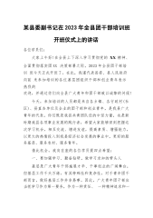 某县委副书记在2023年全县团干部培训班开班仪式上的讲话各位学员们:大家上午好!在全县上下深入学习贯彻党的XX精神、全面贯彻落实团XX决策部署之际,2023年全县团干部培训班今天正式开班了。在此,我谨代表县委、县人民政府向前来参加培训的各位基层团组织干部和创业青年表示热烈的欢迎,并通过你们向全县广大青年和团干部致以诚挚的问候!今天,参加培训的人员都是来自各乡镇、各行政村(社区)、县直各单位及企业的团干部和创业青年,是我县广大青年的代表,你们既是我县共青团队伍的中坚力量,也是新时期我县各项事业发展的践行者,希望大家能够深刻把握这次学习机会,相互交流、增进友谊,提高素质、增强能力,以更大的热情投入...