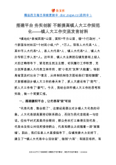 精品范文每日持续更新中doc.zsgw.cc(启用中)搭建平台务实创新不断提高镇人大工作规范化——镇人大工作交流发言材料*镇地处*县城西南*公里,面积*平方公里,辖*个行政村,*个新型农村社区*个村民小组,*户,*万人。现有人大代表*人,其中市人大代表*人,县人大代表*人,镇人大代表*人,镇人大办专职工作人员*人。近年来,镇人大主席团在镇党委和上级人大的正确领导下,紧扣民生民主主题,切实履行工作职责,充分发挥县镇人大代表主体作用,使“小机关”发挥“大能量”。特别是省里及时出台了*意见,从体制机制各方面给我们“鼓劲撑腰”,大家都感到乡镇人大工作的春天来了,抓人大建设有了“底气”,抓人大工作有了“...