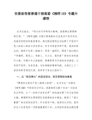 以榜样之光铸忠诚之魂,以实干之力担组工之责——观看《榜样10》专题片心得体会总书记指出:“榜样是看得见的哲理,榜样的力量是无穷的。”近日,我认真收看了《榜样10》专题片,片中茹振钢深耕农业一线育良种、梁建英攻坚高铁技术攀高峰、罗胤扎根基层司法解民忧等先进事迹,以及义乌市天盟实业投资有限公司党支部、空军95944部队xx分队党支部的战斗堡垒故事,令人深受触动、倍感振奋。作为市委组织部一名普通干部,我在榜样身上看到了共产党人的初心使命与责任担当,更深刻认识到,组织工作是党的建设的重要基础,必须以榜样为标杆,将初心刻在心上、把使命扛在肩上,在新时代组织工作高质量发展中履职尽责、担当作为,为推进中国式现代化筑牢组织根基。以“如磐初心”的赤诚之心,锚定组织工作政治方向。总书记强调:“对党忠诚,是共产党...
