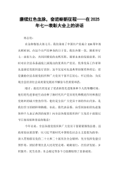 赓续红色血脉,奋进崭新征程——在2025年七一表彰大会上的讲话