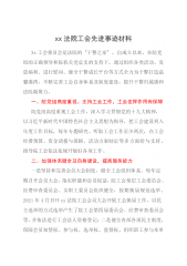 公司工会先进集体材料范文(1)xx公司工会坚持以习近平新时代中国特色社会主义思想为指导,全面贯彻党的十九大及十九届历次全会精神,紧紧围绕上级公司的安排部署,结合xx公司工作实际,紧密团结,扎实工作,全面履行工会职能,切实维护职工合法权益,为公司中心工作夯实了思想基础,真正做到为职工办实事、谋福利。一、加强组织建设,提高服务能力一是加强工会自身规范化建设,把工会工作作为党建和思想政治工作的重要组成部分,使工会工作形成党支部领导、行政支持、工会依法独立自主开展工作的格局。组织开展工会干部队伍学习、培训,注重工会干部素质的提高。二是严格落实工会工作制度,结合公司工作实际,确保工会工作规范、健康、高效...