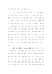 某市委办公厅干部先进事迹材料:凝心聚力“三服务”担当作为守初心***,男,*族,19**年*月出生,****年加入中国共产党,****年毕业于**大学,成为一名光荣的选调生,先后在**市发改委、政府办和**市委改革办、**市委办公室工作,在市县两级党政办公系统工作了16个年头,现任**市委副秘书长。该同志政治立场坚定、思想作风过硬,勇于担当务实创新,在当好市委“核心智库”“坚强前哨”和“巩固后院”工作实践中不断磨砺自我,展现出过硬的政策研究、文字综合和组织协调能力,以高水平的“三服务”工作为助推全市高质量发展作出了积极贡献。一、不改其心、不移其志,坚定信念铸忠诚对党忠诚是共产党人首要的政治品质...