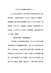 公司工会先进集体材料范文(1)xx公司工会坚持以习近平新时代中国特色社会主义思想为指导,全面贯彻党的十九大及十九届历次全会精神,紧紧围绕上级公司的安排部署,结合xx公司工作实际,紧密团结,扎实工作,全面履行工会职能,切实维护职工合法权益,为公司中心工作夯实了思想基础,真正做到为职工办实事、谋福利。一、加强组织建设,提高服务能力一是加强工会自身规范化建设,把工会工作作为党建和思想政治工作的重要组成部分,使工会工作形成党支部领导、行政支持、工会依法独立自主开展工作的格局。组织开展工会干部队伍学习、培训,注重工会干部素质的提高。二是严格落实工会工作制度,结合公司工作实际,确保工会工作规范、健康、高效...