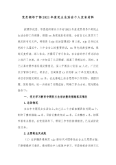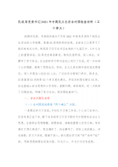 民政局党委书记2021年专题民主生活会对照检查材料(五个带头)按照市纪委、市委组织部关于开好2021年度党员领导干部民主生活会的工作部署,根据XX局党组具体安排,会前自己认真学习了规定的有关文件,特别是习近平总书记在党的十九届五中、X中X会上的重要讲话,XX等先进典型事迹,做到反复研读、深入体会,并撰写了学习体会,在会前的学习研讨活动上进行了交流,进一步加深了认识理解、提高了思想站位。同时,自己认真对照市委巡视反馈意见,深入开展谈心谈话XX人次,广泛征求分管部门单位、联系点、区局集团XX系统等XX个单位意见建议,共征求到意见建议XX条,在此基础上结合思想和工作实际,查摆问题、深刻剖析,进一步找...