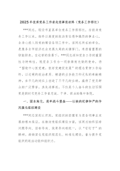 2025年优秀党务工作者先进事迹材料(党务工作部长)