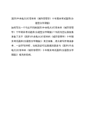 国开(中央电大)行管本科《城市管理学》十年期末考试题库(分题型分学期版)如何写出一个与众不同的国开(中央电大)行管本科《城市管理学》十年期末考试题库(分题型分学期版)?当前为您认真收集准备了关于《国开(中央电大)行管本科《城市管理学》十年期末考试题库(分题型分学期版)》美文锦集,请大家写作阅读参考,一起学写作吧,当然您还可以搜索到更多与《国开(中央电大)行管本科《城市管理学》十年期末考试题库(分题型分学期版)》相关的范例。国开(XX电大)行管本科《城市管理学》十年期末考试题库[分题型分学期版](电大期末纸质考试必备资料)说明:1.试卷号:1186;2.资料整理于2019年11月12日,收集了2...