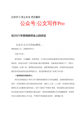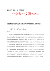 公文写作Pro公众号精选汇编目录1.在2020年全国推动完善“四好农村路”高质量发展体系现场会上的致辞.........................102.奋力开创法治中国建设新局面.................................................................................163.在全省提升应急管理和安全生产综合能力培训暨专题研讨会上的讲话............................254.在区委区政府工作会上的讲话..................................................