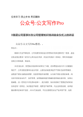 仅供学习禁止外传用后删除公众号:公文写作ProX集团公司董事长在公司管理知识培训结业仪式上的讲话公众号:公文写作Pro整理,,同志们:随着今天这节课结束,公司党委安排的这次管理知识培训也暂时告一段落,趁这次机会我主要讲一讲为什么举办这次培训,对这次培训的一些体会,同时并就做好近期工作再强调、再安排。XX月份以来,管理知识培训班已经举办了X期。在四季度各项工作十分繁重的情况下,公司党委还要举办这次培训,主要目的就是来提升干部队伍的管理素质,这既是干部队伍建设的需要,也是管理提升的需要。从当前干部队伍现状来看,咱们的干部在安全生产、技术管理、处理疑难问题方面确实是经验比较丰富、业务比较娴熟,但一些...