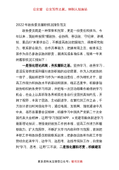 公文堂公文写作之家,体制人加油站2022年政协委员履职情况报告范文政协委员既是一种荣誉和光荣,更是一份责任和担当。今年以来,我始终按照“懂政协、会协商、善议政、守纪律、讲规矩、重品行”来要求自己,不断提高政治把握能力、调查研究能力、联系群众能力、合作共事能力,把谏有用之言、献务实之策作为自己参政议政的职责,圆满完成各项任务,现将一年来的履职状况汇报如下:一是强化理论武装,夯实履职之基。坚持学习、改善学习,是适应形势发展和履行政协职能的迫切需要。作为人民政协的一份子,我始终把学习作为一种政治责任,作为增长才干、提高工作能力和执政水平的基础和源泉。端正态度学。积极参加政协组织的各类学习培训,并把每...