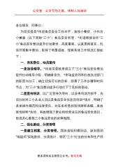 公文堂公文写作之家,体制人加油站2022年农村工作方案、调研报告、汇报、发言等汇编(12篇)目录党建引领农村人居环境整治典型发言1农村人居环境整治经验交流发言材料4在市派村第一书记和农村工作指导员培训开班仪式上的讲话7县发展壮大村级集体经济的探索与思考12关于乡村振兴战略下农村基层党建工作的思考与对策21副书记在全省农村厕所革命电视电话会议上的讲话28在县委农村工作暨实施乡村振兴战略领导小组会议上的讲话48加快推进农村寄递物流体系建设实施方案55培育壮大村级集体经济收入的调研报告62镇2022年农村人居环境整治工作方案74农村工作领导小组会议讲话提纲78农村党建“四大行动”助力乡村振兴汇报80...