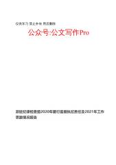 仅供学习禁止外传用后删除公众号:公文写作Pro派驻纪律检查组2020年履行监督执纪责任及2021年工作思路情况报告公众号:公文写作Pro整理,咨询微信:KingGuKai市局党委纪检组:2020年,在市局、县纪监委及本局党委的领导下,XX纪检组认真学习贯彻党的十九大,十九届四中全会和十九届中央纪委四次全会精神,聚焦主责主业,强化监督执纪,切实推动了本单位全面从严治党工作向纵深发展。现将一年来履行监督执纪责任情况报告如下:一、履职尽责情况(一)准确把握“两个维护”,切实履行协助监督责任。一是主动担责。组织召开XX系统全面从严治党工作会议,每半年向局党委汇报党风廉政建设工作开展情况,提醒党委每半年...