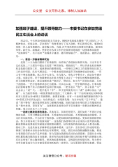 公文堂公文写作之家,体制人加油站加强班子建设,提升领导能力——市委书记在参加党组民主生活会上的讲话同志们,今天参加*党组的民主生活会,刚刚各党组成员围绕“学习党的二十大精神体会,经验总结,存在得失”等角度进行了深入剖析,听后很受启发,感到*局党组一班人是有思路的,是有魄力的。当前,百年变局和世纪疫情交织叠加,面对新形势、新任务、新挑战,坚持党对各项工作的全面领导是战胜一切困难和风险的“定海神针”。关于如何“加强班子建设,提升领导能力”,借此机会,提四点意见。一、要进一步振奋精神状态党的二十大为我们描绘了宏伟蓝图,也吹响了奋进新征程的号角。习近平总书记在党的二十大报告中提出全党要“踔厉奋发、勇毅...