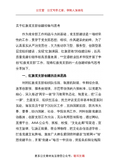 公文堂公文写作之家、体制人加油站局机关2022年党建工作总结及2023年工作思路今年以来,我们坚持用党的创新理论指导工作,坚决贯彻新时代党的建设总要求和组织路线,聚焦局党组“5533”重点任务部署,突出政治建设首要任务,推动基层党组织规范化建设,深化干部纪律作风整顿,加强干部选拔培养使用,各项工作有序有力推进,取得积极成效。一、2022年主要工作及成效(一)坚持举旗铸魂,政治建设更加深入牢固一是深化党的创新理论武装。把学习贯彻习近平新时代中国特色社会主义思想作为政治建设首要任务,纳入基层党组织理论武装“主修课”,党员干部思政教育“必选项”,列为党建考核“必答题”,内部巡察督察“必考项”,采取学...