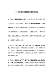 40例领导讲话稿精彩结尾段落汇编1、同志们,起跑决定后程,赢得2019,开好局、起好步至关重要。“志行万里者,不中道而辍足。”新的一年,标杆绝不能降低,工作绝不能松劲,让我们以更饱满的热情、更昂扬的斗志、更务实的作风,一张蓝图绘到底、一身担当拼到底、一心求真实到底、一路同行走到底,创造无愧于企业、无愧于职工、无愧于时代的新业绩,为打造一流市级单位而努力奋斗!2、同志们,一年之计在于春,一年之功在于行。目标在前,责任在肩。希望今天会议后,大家能把精力放在工作上,把心思用在实干上,下大力气,狠抓落实,以奋发昂扬的精神状态、扎实进取的工作作风、只争朝夕的拼搏尽头,迎难而上,奋勇争先,确保全年目标任务...
