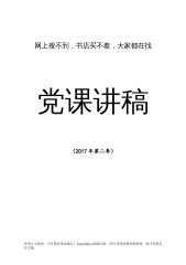 网上搜不到,书店买不着,大家都在找党课讲稿(2017年第二季)更多公文素材、写作指导请加微信:KingGuKai进微信群,即可获得海量免费素材,每日更新实时文稿。公文写作Pro微信公众号更多公文素材、写作指导请加微信:KingGuKai进微信群,即可获得海量免费素材,每日更新实时文稿。目录1.推进“两学一做”学习教育常态化制度化党课讲稿……………(9)2.坚持全面从严治党,优化经济发展环境,众志成城加快建设“五个新衡阳”……………………………………………………(20)3.在全县“两学一做”安排部署会上的讲话暨动员部署专题党课讲稿………………………………………………………………(47)4.讲道德...