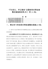 主题教育“回头看”情况报告标题50例总体要求类1.一、全面把握“守初心”的深刻内涵;二、全面把握“担使命”的深刻内涵;三、全面把握“找差距”的深刻内涵;四、全面把握“抓落实”的深刻内涵。2.一、学在深处,切实用新思想武装头脑;二、谋在新处,切实用新思想指导实践;三、干在实处,切实用新思想推动工作。3.一、在守初心中铸忠诚;二、在担使命中显风骨;三、在找差距中补短板;四、在抓落实中见成效。4.一、学深悟透、融会贯通,确保理论学习有收获;二、坚定信仰、传承基因,确保思想政治受洗礼;三、只争朝夕、奋发有为,确保干事创业敢担当;四、牢记宗旨、改进作风,确保为民服务解难题;五、严于律己、修身立德,确保清...