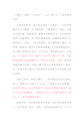 “小稿子”也要下“大功夫”——以一篇“七一”活动致辞为例在我们材料界,能不能扛得起“大报告”,往往是衡量写手实力强弱、水平高低的一个重要标尺。确实,大报告内容丰富、结构复杂,需要有足够的信息、知识和素材积累才支撑得起,有严密的逻辑思维、较强的统筹能力才驾驭得了。但是,一些言简意赅、短小精悍的小稿子,同样很不容易写。能用尽可能短的篇幅、尽可能简明的层次,把小稿子写得以小见大、尺水兴波,同样很见功力。应该说,“大材料”与“小稿子”的写作,难点不一样,不能简单说哪个难度系数更大,哪个水平更高。比如,就同等质量的稿子来说,多数小稿子要比大材料容易写;然而,言少而意多的小稿子,写作难度却远远高于言多而意...