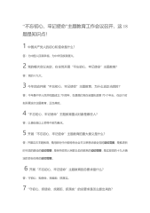 “不忘初心、牢记使命”主题教育工作会议召开,这18题是知识点!1中国共产党人的初心和使命是什么?答:为中国人民谋幸福,为中华民族谋复兴。2党的哪次会议决定,在全党开展“不忘初心、牢记使命”主题教育?答:党的十九大。3今年启动开展“不忘初心、牢记使命”主题教育,为什么说正当其时?答:今年是中华人民共和国成立70周年,也是我们党在全国执政第70个年头,在这个时刻开展这次主题教育,正当其时。4“不忘初心、牢记使命”主题教育重点对象是哪些人?答:以县处级以上领导干部为重点。5开展“不忘初心、牢记使命”主题教育的重大意义是什么?答:开展这次主题教育,是用新时代中国特色社会主义思想武装全党的迫切需要,是推...