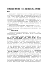 XX市委巡察办领导班子2022年度民主生活会对照检查材料(全文7273字)根据市纪委机关、市委组织部《关于开好2022年度县以上党和国家机关党员领导干部民主生活会的通知》要求,市委巡察办领导班子紧扣此次民主生活会主题,认真制定了民主生活会实施方案,组织全体班子成员通过理论学习中心组学习、“三会一课”、专题学习研讨等形式,深入学习党的XX大报告和D章,认真学习习近平总书记在二十届一中全会上的重要讲话精神、在中共中央政治局民主生活会上的重要讲话精神、二〇二三年新年贺词等重要内容,深入学习领会习近平新时代中国特色社会主义思想,深刻感悟“两个确立”的决定性意义,提高了认识、统一了思想,为开好民主生活会...