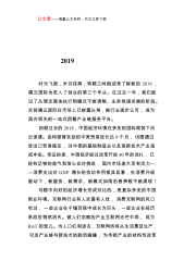 公文堂——海量公文资料,关注立即下载2019时光飞逝,岁月荏苒,转眼之间就迎来了崭新的2019,禧云国际也进入了创业的第三个年头。在过去一年,我们度过了从理念落地执行到模式不断清晰、业务快速发展的阶段。目前禧云国际在市场上已崭露头角,被行业逐步认可,成为国内领先的一站式团餐产业链服务平台。回顾过去的2018,中国经济环境在多变的国际局势下风云诡谲。由特朗普发起的中美贸易战长达9个月,试图通过进出口贸易施压,对中国的基础制造业以及高新技术产业造成冲击。幸运的是,中国经济经过改革开放40年的洗礼,已经有足够的底气和信心应对挑战,国内市场庞大而有活力——消费支出对GDP增长的拉动作用极其显著,在消费...