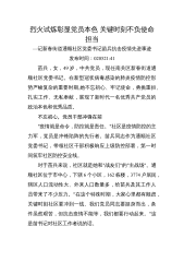 烈火试炼彰显党员本色关键时刻不负使命担当—记新春街道通顺社区党委书记苗兵抗击疫情先进事迹发布时间:020521:41苗兵,女,49岁,中共党员,现任南关区新春街道通顺社区党委书记。在新型冠状病毒感染的肺炎疫情防控形势严峻复杂的重要时期,她不忘初心、牢记使命,勇挑重担、扎实工作、无私奉献,展现了新时代一名优秀共产党员的政治本色和优秀品质。不忘初心,党员干部冲锋在前"疫情就是命令,防控就是责任。"社区是疫情防控的主力军,党员是冲锋陷阵的先行者。苗兵同志作为通顺社区党委书记,带领社区干部积极响应上级防控部署,第一时间筑牢社区防控安全线。对于苗兵来说,社区就是她和"战友们"的"主战场"。通顺社区位于市...