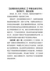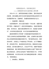 做好防疫工作保护好群众安全——记XX区卫生健康局党委委员、副局长XX“作为党员领导干部,本身就要身先士卒”,在XX区卫生系统新型冠状病毒疫情防控党员应急分队动员会议上,XX区卫生健康局党委委员、副局长XX如是说。而他本人自除夕节至今,每天废寝忘食,休息都不顾上,却总是能够出色完成组织交付的任务。冲在最前“自己要冲到最前线,做好防疫工作,保护好群众安全!”在局党委会上,XX这样表态。作为分管领导,肩上的担子重,压力大。XX在春节也没有睡好一个囫囵觉,判形势、巡地点、查物资、审材料,指导乡镇、街道和村、社区做好武汉回来人员的摸底,指导基层卫健人员严格按照流程开展工作,指导疾控人员做好公共场所的消毒...