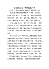 新婚第三天请战抗疫一线——记XX县XX镇XX村青年党员、体制外医生XX新型冠状病毒感染的肺炎疫情,牵动着千万人的心。在千家万户欢聚一堂、共贺新春之际,面对日益严峻的疫情防控形势,总有一些人,放弃与家人团聚的机会,只为守护千万家的健康,青年党员、中医XX就是其中的一员。XX是XX镇XX村人,今年33岁,中共党员,中医研究生毕业,自己在县城经营一家中医诊所。大年三十那天是他新婚的第三天。看着严峻的疫情形势,刚刚新婚的他主动申请加入县人民医院发热门诊工作,冲在抗击疫情的前线。大年三十那天上午,XX在手机上看着被感染新型冠状病毒的患者不断上升的数字,知晓武汉疫情蔓延严重,加之冬季流感发热与普通感冒发热...
