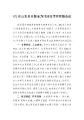 党建引领多方联动完善网格筑牢疫情防控村居坚固防线——在疫情防控经验交流会上的讲话同志们:根据会议安排,我结合做好疫情防控工作,讲几点体会。今年以来,面临新型冠状病毒感染的肺炎疫情防控的严峻形势,我们牢牢守住防控战线“最后一百米”,迅速启动应急响应机制,充分发挥基层党组织的战斗堡垒作用和党员先锋模范作用,创新运用“社区党委+物业管理+党员楼长+党群防疫先锋队”的方式方法,整合辖区资源,下沉工作力量,筑牢群防群治的严密防线,以实之又实、细之又细的工作,联防联控,群防群治,提升辖区群众安全感,增强打赢疫情防控阻击战的信心。一是聚焦社区党委这个核心。充分发挥制度优势,安排书记、主任、集体经济组织负责人...