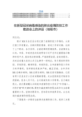 同志在全县新型冠状病毒感染的肺炎疫情防控调度工作会议上的讲话