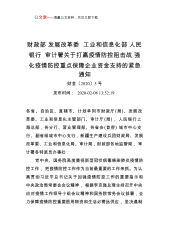 公文堂——海量公文资料,关注立即下载财政部发展改革委工业和信息化部人民银行审计署关于打赢疫情防控阻击战强化疫情防控重点保障企业资金支持的紧急通知财金〔2020〕5号发布时间:2020-02-0813:52:19各省、自治区、直辖市、计划单列市财政厅(局)、发展改革委、工业和信息化主管部门、审计厅(局),人民银行上海总部,各分行、营业管理部、各省会(首府)城市中心支行、副省级城市中心支行,新疆生产建设兵团财政局、发展改革委、工业和信息化局、审计局,财政部各地监管局,审计署各特派员办事处:党中央、国务院高度重视新型冠状病毒感染肺炎疫情防控工作,把疫情防控工作作为当前最重要的工作来抓。为认真贯彻习近...