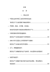 合集目录一、理论文章1.中国社会科学院工业经济研究所金碚:“新质生产力冶的国家方略政策取向........................................12.尹西明,陈劲,王华峰,刘冬梅:强化科技创新引领加快发展新质生产力.................................123.中国宏观经济研究院盛朝迅:新质生产力的形成条件与培育路径.......................................194.吉林大学马克思主义学院韩喜平马丽娟:新质生产力的政治经济学逻辑............................................