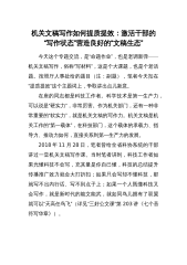 机关文稿写作如何提质提效:激活干部的“写作状态”营造良好的“文稿生态”今天这个专题交流,是“命题作业”,也是老调新弹——机关文稿写作,俗称“写材料”,这是个大课题,也是个老话题。按照厅人事处给的题目(注:副题),笔者今天扣在“提质提效”这个主题词上,争取讲出点儿新意。在座的同志都是科技工作者。科学技术是第一生产力,可以说是“硬实力”,非常厉害。作为机关部门,还有一种非常重要的“软实力”,就是机关文稿的写作力。机关文稿是机关工作的“第一载体”,在科技部门,这个载体的承载力、指导力、推动力如何,直接关系到第一生产力的发展。2018年11月28日,笔者曾给全省科协系统的干部讲过一堂机关文稿写作课。当...