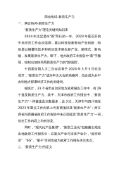 描绘新的蓝图:深刻领悟高质量发展这个硬道理——2024年全国两会前瞻 “必须把坚持高质量发展作为新时代的硬道理”——习近平总书记在去年中央经济工作会议上深刻总结新时代做好经济工作的“五个必须”规律性认识,其中这个“硬道理”居于首位。 今年是新中国成立75周年,是实现“十四五”规划目标任务的关键一年。在这个重要年份召开的全国两会,如何聚焦高质量发展这个硬道理,进一步擘画出推进高质量发展的路线图、施工图,备受各方关注。锻造创新引领力 创新是引领发展的第一动力。近日,“新质生产力”成为从中央到地方部署经济工作的关键词,也将是两会代表委员积极建言献策的热点。 习近平总书记在二十届中共中央政治局第...