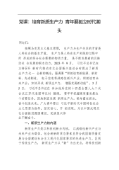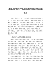 党课:坚持因地制宜发展新质生产力,为经济高质量发展提供持续动力在全国两会今年的议程中,习近平总书记重申并深入阐释了发展新质生产力的必要性,为我们因地制宜地推进新质生产力发展,促进经济高质量发展提供了明确的指导方向。这一战略举措是由以习近平同志为核心的党中央,在全面实现科技高水平自主创新和推动经济高质量发展的首要任务下提出的。习近平总书记关于新质生产力的论述,精准地揭示了新发展阶段生产力演进的内在规律和特征,深入阐述了新质生产力与科技创新、产业创新的内在联系,为我们明确了加快发展新质生产力的主要任务和措施,为扎实推动经济高质量发展提供了坚实的理论支撑和实践指南。本次专题党课,我们将围绕今年两会热...