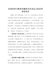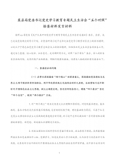 ·1某县局党委书记党史学习教育专题民主生活会“五个对照”检查材料发言材料按照xx局党委《关于认真开好党史学习教育专题民主生活会有关通知》要求,会前,我已完成党委规定的学习计划,并重温研读习近平总书记在党史学习教育动员会上的讲话精神,以及王沪宁同志在党史学习教育总结会议上的讲话精神,积极参加民主生活会各项准备工作,通过自己查摆、谈心谈话、征求意见、走访调研等方式,对照“五个带头”要求,深入剖析自身存在的问题,反思问题产生的根源,明晰问题整改措施,现将本人检视剖析情况报告如下。一、查摆存在的问题(一)在带头深刻感悟“两个确立”的重要意义,深刻感悟党坚持把马克思主义同中国具体实际相结合、同中华优秀传...