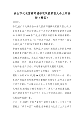 在全市优化营商环境推进双招双引大会上的讲话(精品)同志们:今天,我们在此召开全市优化营商环境推进双招双引大会,主要任务是深入学习贯彻习近平总书记考察安徽重要讲话精神,总结回顾2025年工作,分析研判当前形势,安排部署新一年任务,动员全市上下以“开局即决战、起步即冲刺”的奋斗姿态,奋力开创XX市高质量发展新局面。营商环境是生产力、竞争力,双招双引是经济工作的生命线、是高质量发展的源头活水。抓好这两项工作,是推动XX在新征程上勇立潮头、走在前列的关键之举。全市各级各部门必须统一思想、凝聚共识,以更大的决心、更强的力度、更实的举措,全力以赴打好这场事关长远发展的攻坚战。一、回顾过去,在肯定成绩中坚定信心、砥砺前行刚刚过去的2025年,是XX发展史上极不平凡的一年。面对复杂严峻的外部环境和艰巨繁重的...