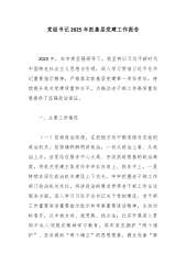县委书记在2025年度乡镇党委、县直党(工)委书记抓基层党建工作述职评议会上的主持讲话(精品)同志们:今天,我们在这里召开2025年度全县乡镇党委、县直党(工)委书记抓基层党建工作述职评议会。这次会议的主要任务是,深入学习贯彻习近平总书记关于党的建设的重要思想、关于党的自我革命的重要思想和考察XX重要讲话精神,通过现场述职、领导点评、民主测评的方式,回顾总结2025年全县基层党建工作,查摆问题、压实责任,并对2026年的工作进行谋划部署。目的就是要树立大抓基层的鲜明导向,推动全面从严治党向基层延伸,以党建工作提质增效护航“十五五”良好开局,为加快建设现代化美好XX提供坚强组织保障。参加今天会议的有:县委常委,县委党建工作领导小组成员单位主要负责同志,各乡镇党委书记,县直各党(工)委书记,以及...