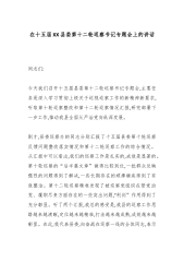 在十五届XX县委第十二轮巡察书记专题会上的讲话同志们:今天我们召开十五届县委第十二轮巡察书记专题会,主要任务是深入学习贯彻上级关于巡视巡察工作的新精神新要求,听取第十轮巡察整改和第十二轮巡察情况汇报,研究部署下一步工作,推动我县全面从严治党向纵深发展。刚才,县委巡察办的同志分别汇报了十五届县委第十轮巡察反馈问题整改落实情况和第十二轮巡察工作的综合情况。从汇报中可以看出,我们的巡察工作是扎实的,成效是显著的。第十轮巡察的“后半篇文章”做得比较到位,一批群众反映强烈的问题得到了解决,一些长期存在的顽瘴痼疾得到了有效整治。第十二轮巡察精准发现了被巡察党组织在管党治党、履职尽责方面存在的一些突出问题,“利剑”作用得到了充分彰显。听了两个汇报,我总的感受是,我县的巡察工作思路越来越清晰,定位越来越精准...