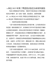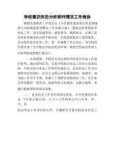 学校意识形态分析研判情况工作报告根据县委教育工作委员会《全县教育系统意识形态领域重大风险隐患排查整治工作实施方案》,我校高度重视意识形态工作,切实加强领导,强化督导,狠抓落实,实现了意识形态领域形势总体平稳可控。全校按照教育工委的要求,扎实做好意识形态工作,进一步凝聚了党心民心,为学校的发展营造了安全稳定的意识形态环境。现将学校意识形态工作研判情况简要汇报如下:一、总体趋势。学校党支部定期对学校意识形态工作进行研判。通过研判认为,目前学校意识形态工作的主流是好的。学校对意识形态工作领导坚强有力。意识形态工作责任制落实比较到位。社会主义核心价值观进校园、进课堂、进头脑工作有序开展;加强了干部群众...