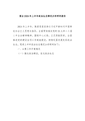 关于本单位2025年度政治生态分析报告(精品)为深入贯彻落实全面从严治党战略方针,精准把握本单位政治生态状况,推动党建工作与业务工作深度融合,根据上级党委统一部署和年度工作安排,通过专题调研、谈心谈话、查阅资料、征求意见等方式,对本单位政治生态建设情况进行了全面深入的分析研判。现将有关情况报告如下:一、总体评价2025年以来,本单位坚持以习近平新时代中国特色社会主义思想为指导,深入学习贯彻党的二十大和二十届二中、三中全会精神,坚持把全面从严治党作为一切工作的基础保障,以党的政治建设为统领,持续加强党风廉政建设,深入推进反腐败斗争,政治生态整体呈现持续向好态势。广大党员干部政治意识明显增强,党内政治生活更加严肃规范,廉洁文化氛围日益浓厚,选人用人导向更加鲜明,正风肃纪反腐成效显著,权力运行监督...