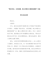 在市委理论学习中心组树立和践行正确政绩观专题学习研讨会议上的交流发言同志们:根据本次专题学习研讨安排,下面,我围绕树立和践行正确政绩观,结合我市工作实际,谈几点认识和体会。一、深刻领悟正确政绩观的精髓要义,始终把牢高质量发展政治方向政绩观是世界观、人生观、价值观在干事创业中的具体体现,反映干部的党性修养、政治立场和格局境界。党的十八大以来,总书记就树立和践行正确政绩观发表一系列重要论述,深刻回答了“为谁创造业绩、创造什么样的业绩、怎样创造业绩”等重大理论和实践问题,为广大党员干部立身处世、干事创业提供了根本遵循。进入新发展阶段,我市正处在融入郑州都市圈、加快建设社会主义现代化我市的关键时期,肩负着推动高质量发展、打造新时代文化高地、实现市域治理现代化等历史重任。面对区域竞争日趋激烈、发展任务...