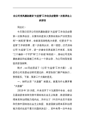 在公司党风廉政建设“大监督”工作动员会暨第一次联席会上的讲话同志们:今天我们召开公司党风廉政建设“大监督”工作动员会暨第一次联席会议,主要目的是深入贯彻全面从严治党责任和“一岗双责”要求,全面落实国电电力党委、纪委关于“大监督”工作的部署,进一步提高认识、统一思想,正式启动公司“大监督”工作,进一步健全完善监督工作体系,实现“三个确保一个守护”和“三个价值”有机统一,推动公司党风廉政建设和反腐败工作再上一个新台阶,为公司转型发展提供坚强保障。刚才,xx同志宣读了《公司“大监督”工作方案》,这是经公司党委会议研究通过的,希望各部门要严格执行,贯彻落实。下面,我讲三个方面的意见。一、如何认识“大监...