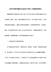 ·1市委常委领导班子党史学习教育专题民主生活会对照检查材料范文根据省委《关于开好党史学习教育专题民主生活会的通知》要求,市委拟定于2022年x月x日召开市委常委党史学习教育专题民主生活会。这次民主生活会的主题是,大力弘扬伟大建党精神,坚持和发展党的百年奋斗历史经验,坚定历史自信,践行时代使命,厚植为民情怀,勇于担当作为,团结带领人民群众走好新的赶考之路。会前,市委对照此次民主生活会主题,在开展学习教育、广泛征求意见建议、深入开展谈心谈话的基础上,认真对照“五个方面”内容,深刻查摆检视,深挖问题根源,明确整改措施。现将有关情况汇报如下:一、专题民主生活会准备情况一是高度重视,精心安排部署。市委常...