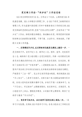 党支部工作法-“四步走”工作法总结XXX党支部现有党员XX名,分布在X个处室,主要承担XXX系统基层党建、XXX大学建设与管理工作、全XXX干部员工的教育培训管理工作。作为直接开展党建工作和干部教育培训工作的党支部,XXX党支部始终坚持政治引领,坚持“打铁必须自身硬”,总结形成了“四步走”工作法,持续加强支部建设、推动融合互促,特别是面对疫情防控常态化的新要求新课题,不等不靠、主动作为、积极创新,不断提升支部工作质量。一、支部建设齐步走,在支部标准化规范化建设上踏实一步。一是支部班子齐。设有书记1名、副书记1名,组织、宣传、纪检委员各1名,确保每个党小组均配1名党支部委员,并第一时间做好支部委...