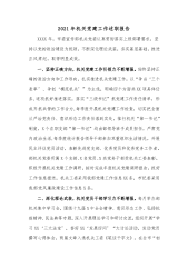 2021年机关党建工作述职报告XXXX年,市委宣传部机关党委认真贯彻落实上级部署要求,坚持以党的政治建设为统领,不断深化理论武装,夯实基层基础,推进正风肃纪,取得明显成效。一、坚持正确方向,机关党建工作引领力不断增强。始终坚持正确的政治方向和工作导向,扎实推进机关党建工作。以“争当‘三个表率’、争创‘模范机关’”为主线,明确四个方面共XX项具体任务,逐项抓好推进落实。落实“三级书记”抓党建工作责任清单,形成齐抓共管的工作合力,每季度开展机关党建工作检查,切实把全面从严治党责任、意识形态工作责任落到实处。推行机关“第一书记”制度,X个在职支部“第一书记”均由部领导班子成员担任。严肃党内政治生活,...