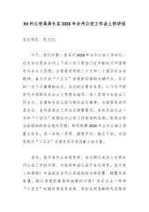 XX县委常委、政法委书记在全县政法系统2026年全面从严治党暨党风廉政建设工作专题会上的讲话同志们: 今天我们召开全县政法系统2026年全面从严治党暨党风廉政建设工作专题会,主要任务是:深入学习贯彻关于党的自我革命的重要思想,全面落实二十届中央纪委五次全会精神以及省委、市委、县委相关部署要求,总结回顾过去一年全县政法系统全面从严治党和党风廉政建设工作分析当前形势,安排部署2026年重点任务,动员全县政法各单位和全体政法干警进一步统一思想、提高站位,以永远在路上的坚韧和执着,把严的基调、严的措施、严的氛围长期坚持下去,为推动新时代新征程政法工作高质量发展提供坚强纪律作风保障。 一、肯定成绩,正视问题,切实增强全面从严治党的政治自觉和行动自觉 过去一年,在县委的坚强领导下,全县政法系统坚决...