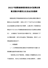 2022巡察民主生活会发言提纲:2022年度粮食购销系统机动式巡察反馈意见整改专题民主生活会发言提纲