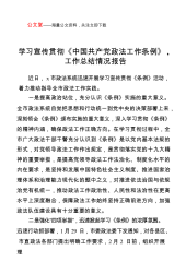 公文堂——海量公文资料,关注立即下载学习宣传贯彻《中国共产党政法工作条例》,工作总结情况报告近日,x市政法系统迅速开展学习宣传贯彻《条例》活动,着力推动指导全市政法工作实践。一是提高政治站位,充分认识《条例》实施的重大意义。全市政法系统自觉把思想和行动统一到党中央的决策部署上来,深刻领会《条例》颁布实施的重大意义,深入学习贯彻《条例》的精神内涵,确保政法工作正确方向。在学习贯彻过程中,全市广大政法干部干警充分认识到《条例》是以党内基本法规的形式,对党领导政法工作作出规定,是贯彻落实党的十九大精神的重要举措,是提高党领导政法工作法治化、制度化水平的内在要求,是坚持和发展中国特色社会主义制度、推进...