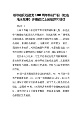 领导在庆祝建党100周年特别节目《红色地名故事》开播仪式上的致辞和讲话同志们:大家上午好!在党的百年华诞即将到来之际,在党史学习教育如火如荼深入开展之际,市民政局和xx广播电视台联合推出《庆祝建党100周年特别节目特辑——记住红色地名,赓续红色基因》,恰逢其时,很有意义。首先,我谨代表市政府,对节目的胜利开播,表示热烈祝贺!向为节目付出辛勤劳动的台前幕后工作者,致以诚挚问候!党的十八大以来,习近平总书记在地方考察调研时,多次到访革命纪念地,瞻仰革命历史纪念场所,反复强调要用好红色资源,传承好红色基因,把红色江山世世代代传下去。xx是一座有着光荣革命历史的城市,xx、xx等老一辈无产阶级革命家,...